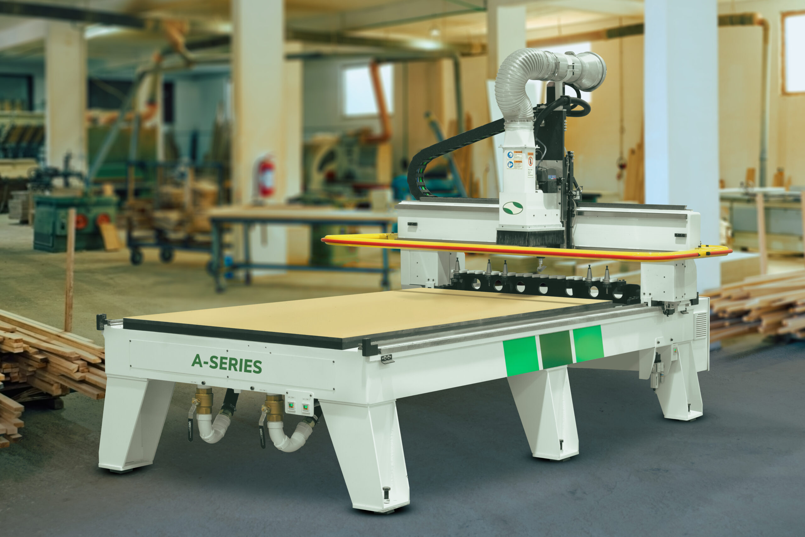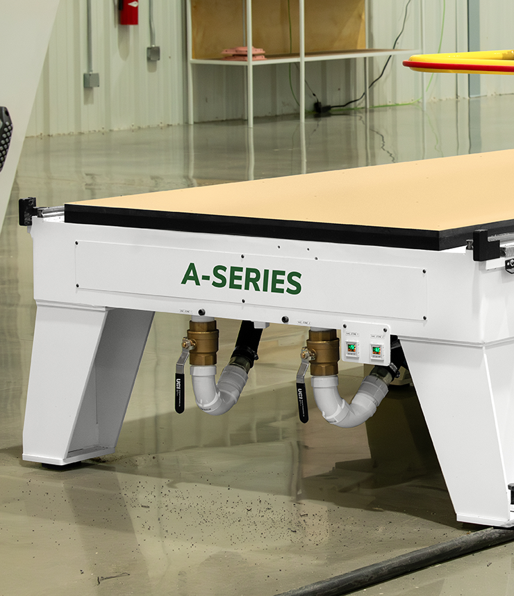 The 3-Axis A-Series is a small-footprint industrial CNC router that performs all your essential functions at an attractive price. It is engineered for professionals who want dependable, high-quality performance without the need for elaborate add-ons. This machine achieves programmable feed rates up to 1,000ipm, providing the end user with production capabilities typically found on more expensive machines.