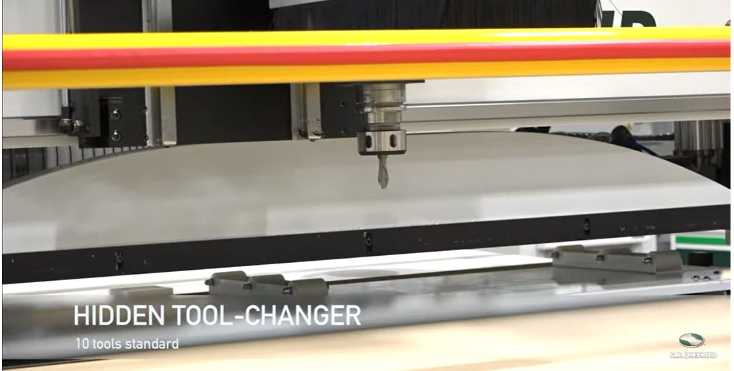 With the Hide-A-Way® Tool Changer, the tool rack is hidden in its base at the end of the machine. As the spindle moves toward the tool door, it automatically opens for quick and easy tool changes. The door then closes to cover the tools not being used, thus keeping them clean, protected, and away from your cutting envelope as well as giving you access to the entire table.