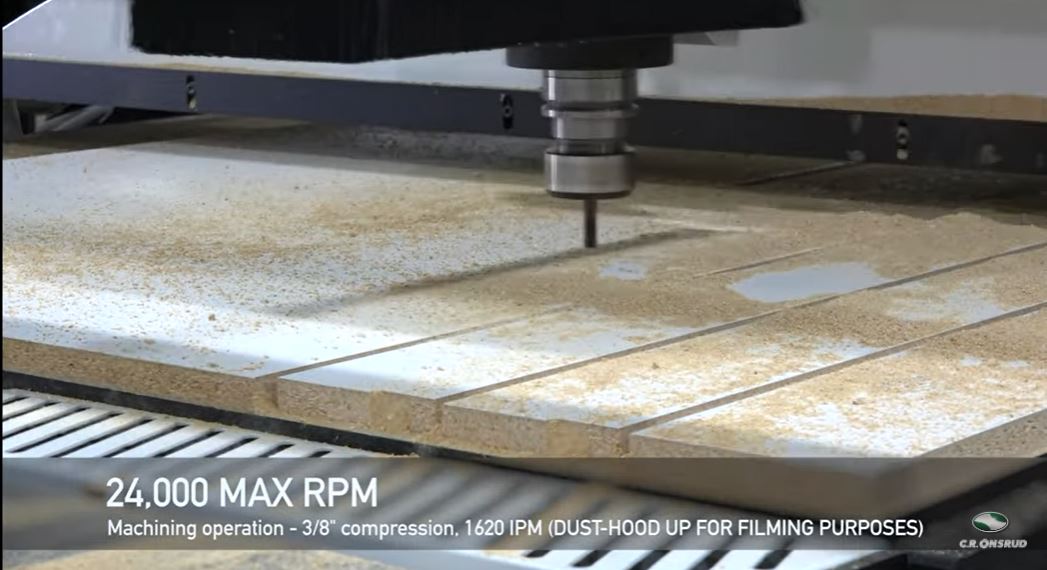 With the rigid, steel frame construction of the M-Series, its laser-aligned gantry and spindle, responsive dual-drive mechanisms, and 12 hp motor, at 24,000 rpm, you’ll power through material quickly, reliably, and accurately. In this demo, 3/8″ compressed wood panel had a machining speed of 1620 inches per minute. Other materials have delivered 3600 ipm. Depending on characteristics of the material you’re processing, results will vary.