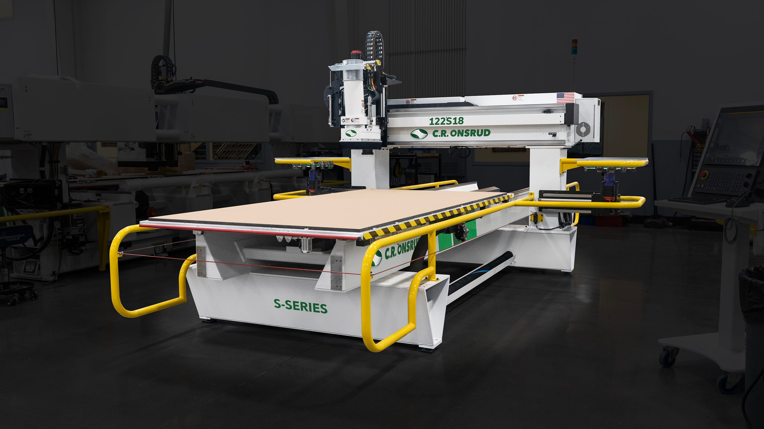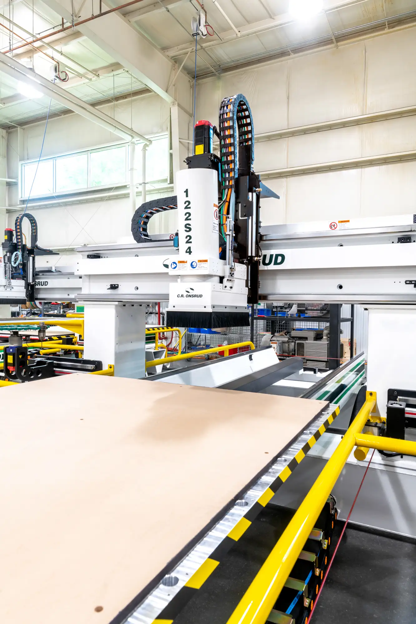 Integrate C.R. Onsrudās automated material-handling systems that fit the flow of your production. With customized linear and cell-based solutions, you get as much or as little automation as you need, from simple loading/offloading with or without pre-labeling to fully automated material storage and retrieval systems with integrated routers and saws. See also Automation for more information.
