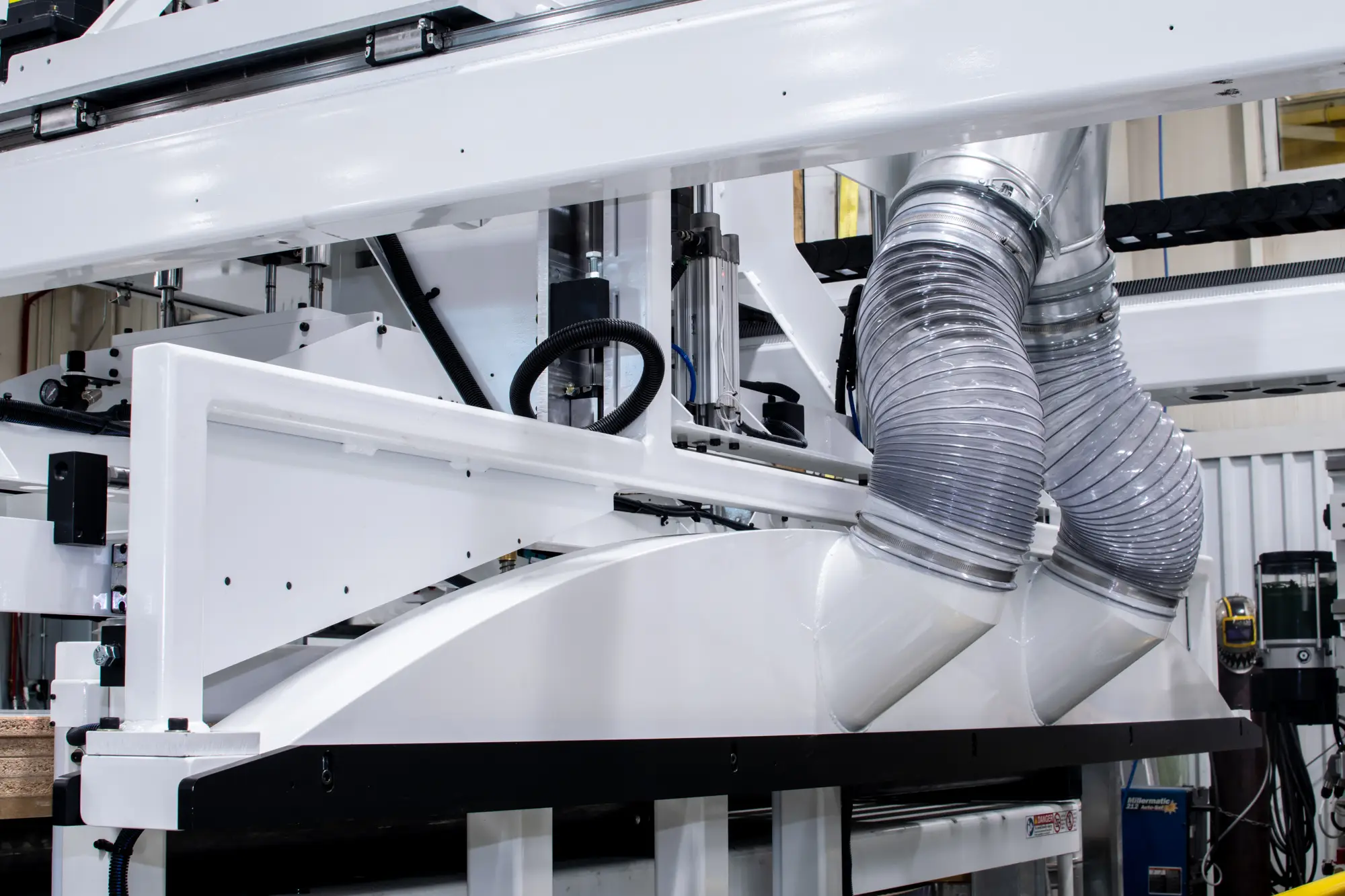 Dust management systems connected to appropriate dust collection systems capture chips, dust, and other airborne particles that would otherwise be harmful to humans and the machining environment. We offer dust management systems that are geared toward the materials you’re machining and your production environment.